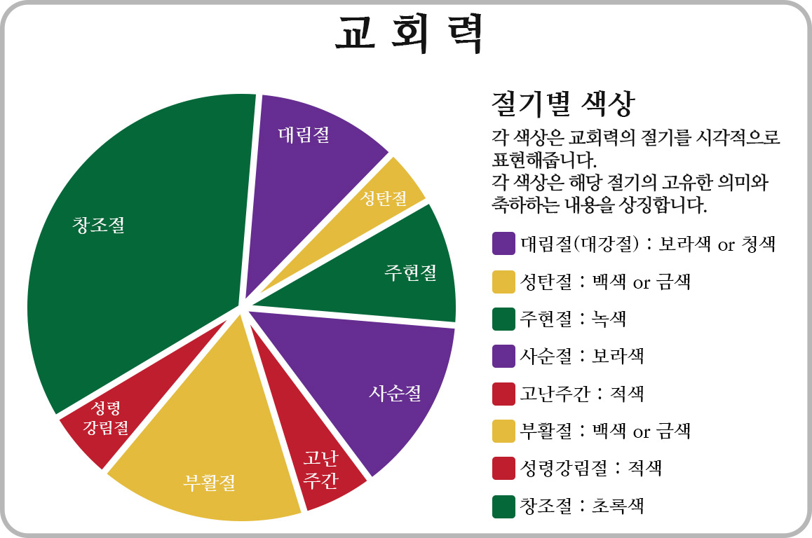 오늘은 교회 절기(교회력)의 색상에 대해 알아보는 시간을 갖겠습니다.